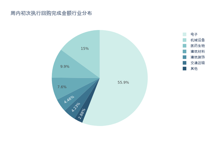 按照初次执行金额所在不同行业分布,金额最高的3个行业分别为:电子、机械设备、医药生物,详情见下图: